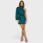 Elegância subtil com um toque moderno—o vestido Mara encanta com o seu design assimétrico e a delicada draparia que envolve elegantemente a silhueta. Com um decote de um ombro e draparia estratégica, oferece um aspeto refinado e confortável para ocasiões especiais ou noites inesquecíveis.